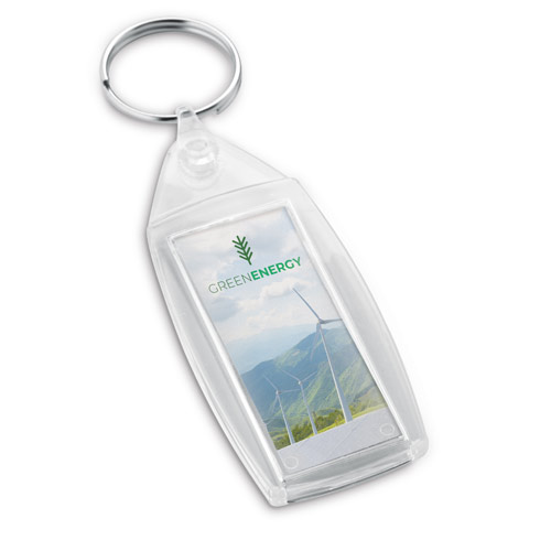 Ορθογώνιο διαφανές μπρελόκ PS. Κατασκευάζεται στην Ευρώπη. 31 x 73 x 5 mm