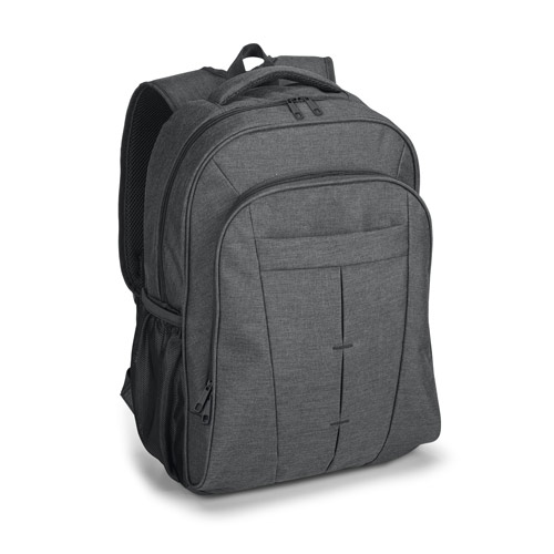 Σακίδιο φορητού υπολογιστή έως 17″ σε υψηλή πυκνότητα 600D. Επένδυση στο κύριο διαμέρισμα με φερμουάρ, το οποίο περιέχει ένα διαχωριστικό με επένδυση και αρκετές εσωτερικές τσέπες. Έχει δύο πλαϊνές τσέπες και δύο μπροστινές τσέπες, μία με φερμουάρ. Ιμάντες με επένδυση και πλάτη, με σύστημα στήριξης με επένδυση για την πλάτη. Χωρητικότητα έως 24 L
