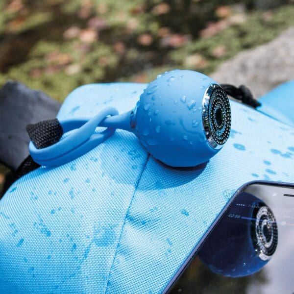 Πλαστικό ηχείο Bluetooth με λαβή ανάρτησης και φινίρισμα επιφάνειας σιλικόνης που επιτρέπει αντοχή σε υψηλή υγρασία. Τεχνικές προδιαγραφές: έξοδος 3 W, 2.1 Bluetooth με εύρος 10 m, χωρητικότητα μπαταρίας 300 mAh, χρόνος φόρτισης 1-2 ώρες, χρόνος αναπαραγωγής 2-3 ώρες, κουμπί αναπαραγωγής / διακοπής στο ηχείο. Συμβατό με όλες τις συσκευές που υποστηρίζουν Bluetooth. Περιλαμβάνεται καλωδίωση USB / Micro USB. ø50 x 48 mm